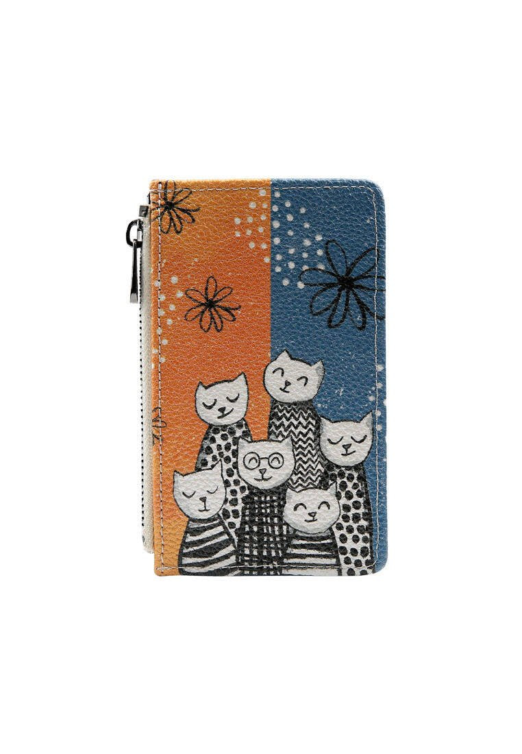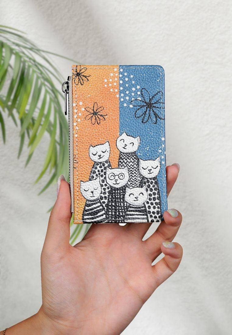 Precio habitual $16.990 .¡Amigui, dile adiós a la billetera gigante! 👋 Esta billetera tarjetero slim con el diseño de la "Familia de Gatos" es lo más tierno y práctico que verás hoy. El contraste de naranja terracotta y azul con el print gatuno le da un aire único y artsy. Es el accesorio perfecto para llevar lo esencial sin bulto y, ¡obviamente!, está confeccionado con materiales veganos de alta calidad y es eco-friendly. ¡Estilo mini con máximo corazón! 🧡