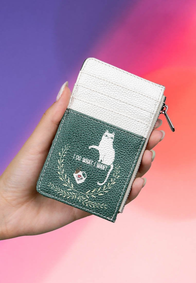 Precio habitual $16.990 .¡A ver, catlover con actitud! 💁♀️ Esta billetera tarjetero es pura declaración de principios con ese diseño de gato bossy y la frase "I Do What I Want" en un verde bosque intenso, contrastando con el blanco chic. Es el accesorio único y exclusivo que te define. Además, es eco-friendly para que muestres tu garra con conciencia y estilo. ¡10/10 en actitud fashion! 🌿