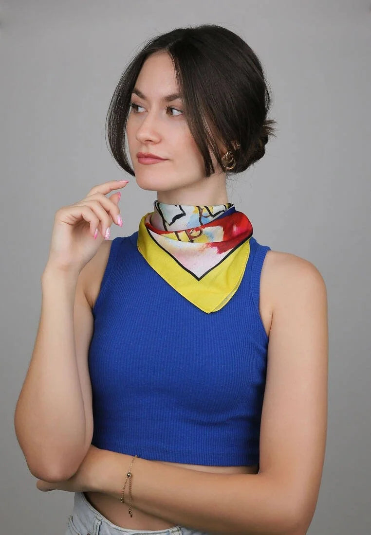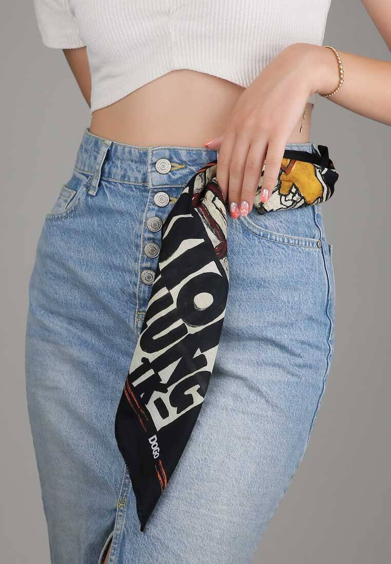 Para resaltar los tonos cálidos y fríos de la cartera, te propongo un look casual y vibrante con un enfoque en el contraste. Combínala con shorts de denim claros (o una minifalda de mezclilla) y una polera o blusa crop en tono blanco o naranja quemado.