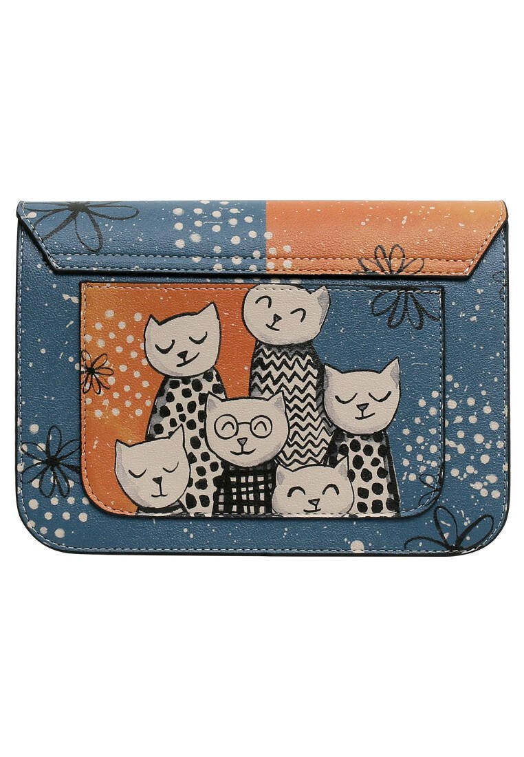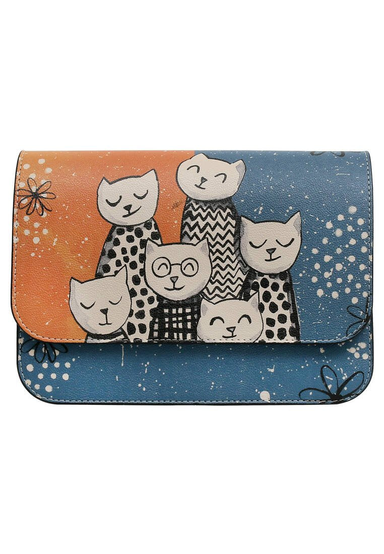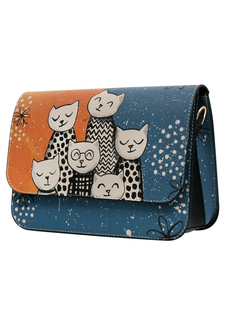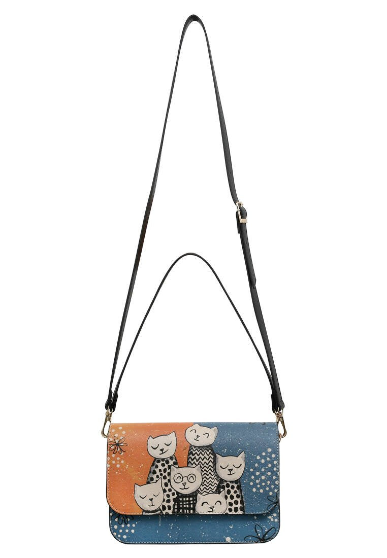 Precio habitual $45.000 .¡Amiga catlover, tienes que llevar esta joyita! 😻 Esta cartera crossbody es pura ternura con su print único y exclusivo de una "Familia de Gatos" sobre un fondo de contrastes: azul profundo y naranja terracotta. El diseño artístico es súper cute y trendy. Es el accesorio perfecto para darle ese toque de exclusividad a tu look. Y lo mejor: es eco-friendly.