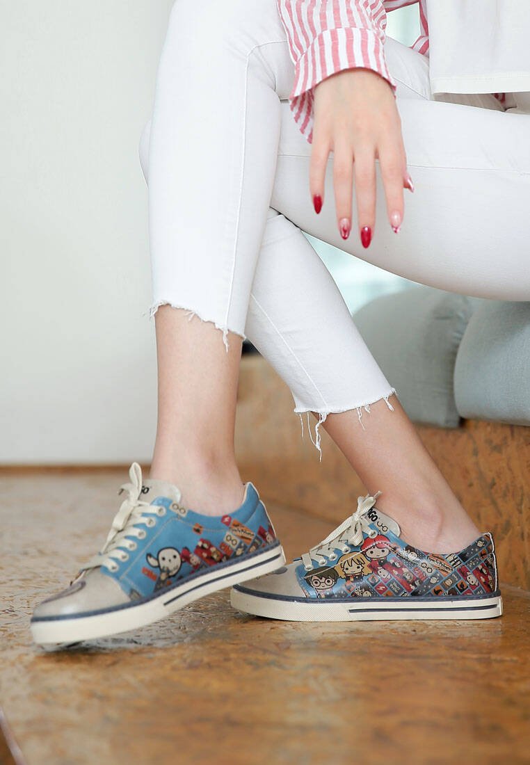 Precio habitual $78.000 .¡Súbete al Expreso de Hogwarts con estilo! 🚂 Estas zapatillas low-top son la entrada a la magia con un print único y exclusivo de Harry y sus amigos, la Plataforma 9 3/4 y el logo. El color block en celeste pastel y beige las hace súper cute y trendy. Son cómodas para todas tus clases de magia. Y por supuesto, son eco-friendly ¡para que vivas tu fandom con conciencia! ✨